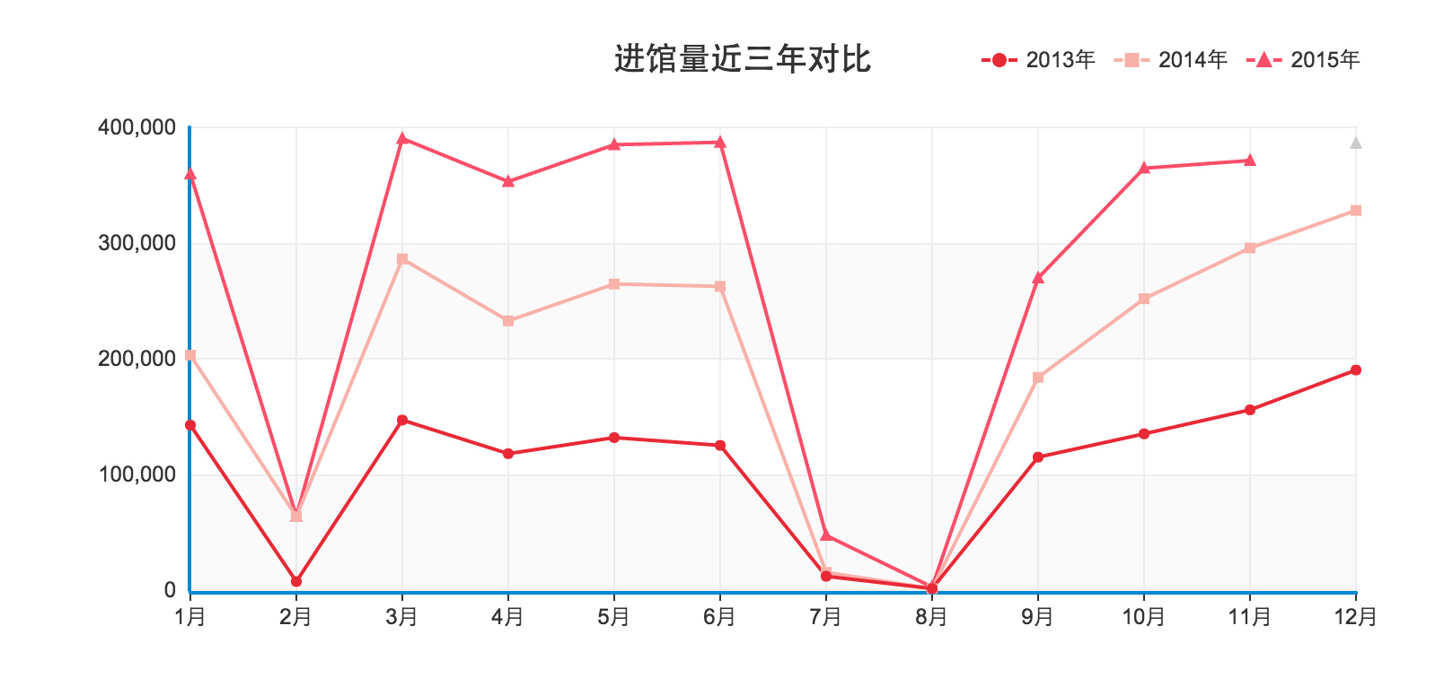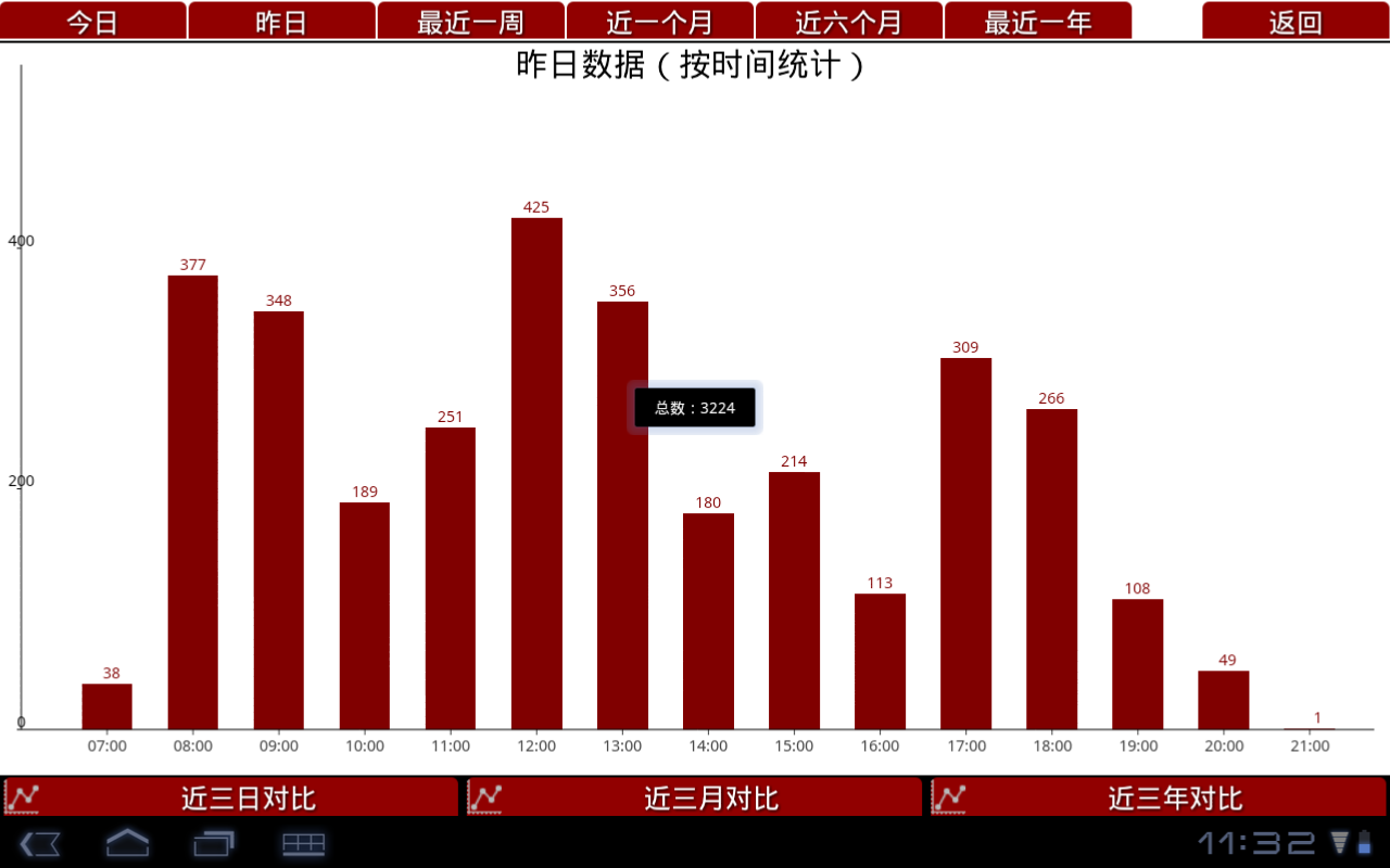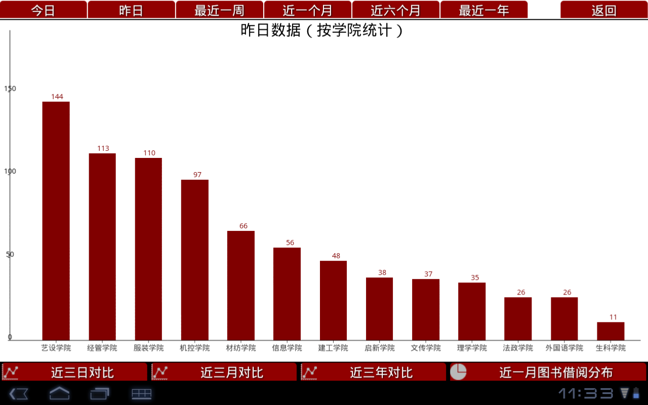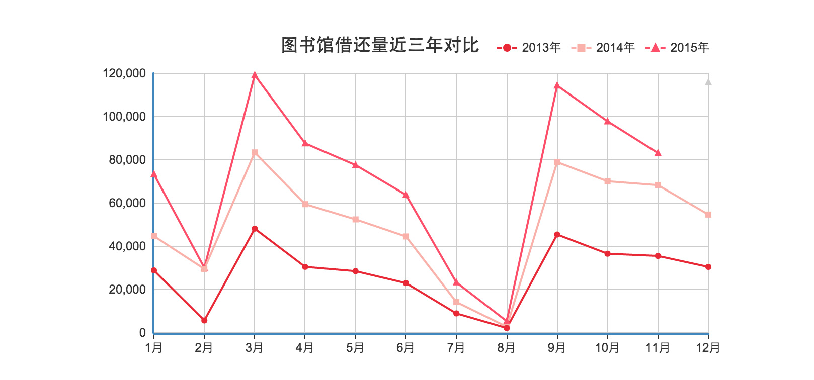 從學(xué)校教務(wù)系統中導入學(xué)生歷次考試成績(jì),結合該學(xué)生進(jìn)館時(shí)間,分析該學(xué)生借閱量和成績(jì)的對應關(guān)系趨勢挖掘今日、昨日、近一周、近一月、近半年、近一年進(jìn)館量數據統計,以及近三日、近三月、近三年的進(jìn)館量數據對比,全方位掌握圖書(shū)館的到館人數訪(fǎng)問(wèn)量。